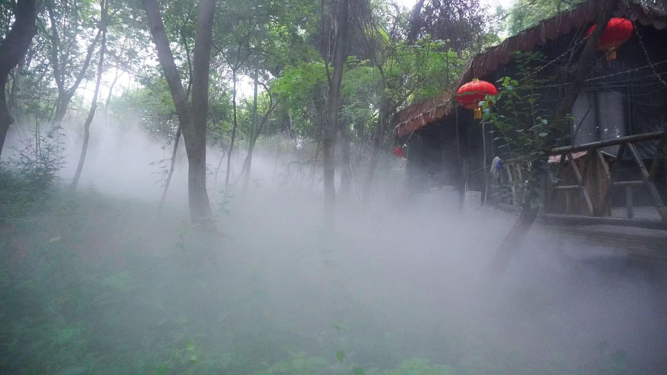 鄂州畔山居民宿景观雾森工程利用高压喷雾技术营造百里生态山水风景。